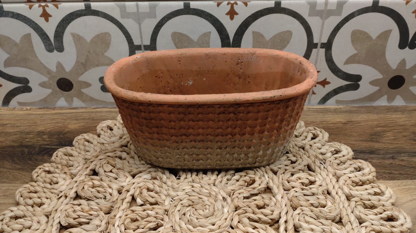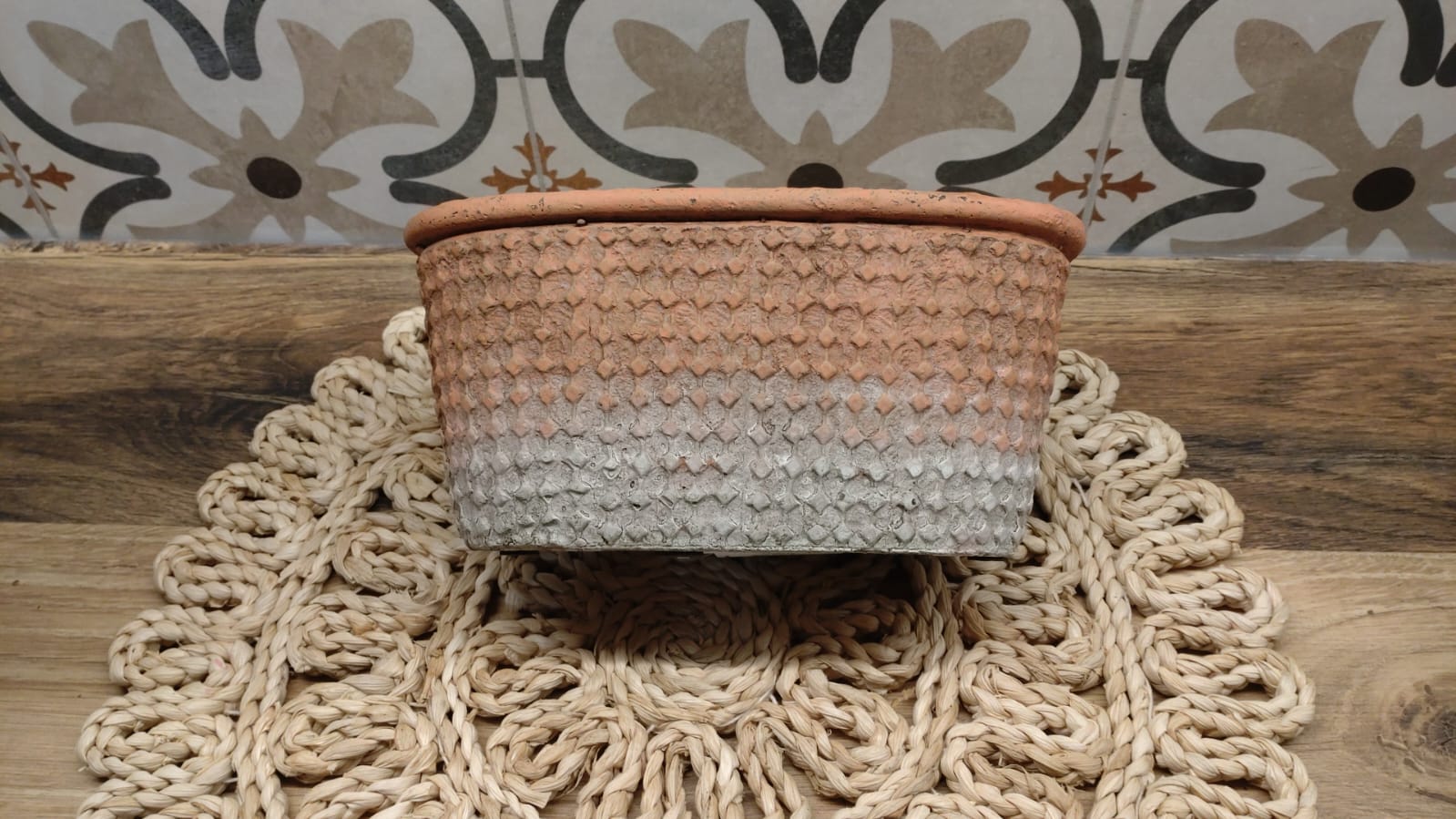 Ibis- betonový, červený obal na dvě květiny. Rozměr: 21x11x10cm, velikost květináče 9cm