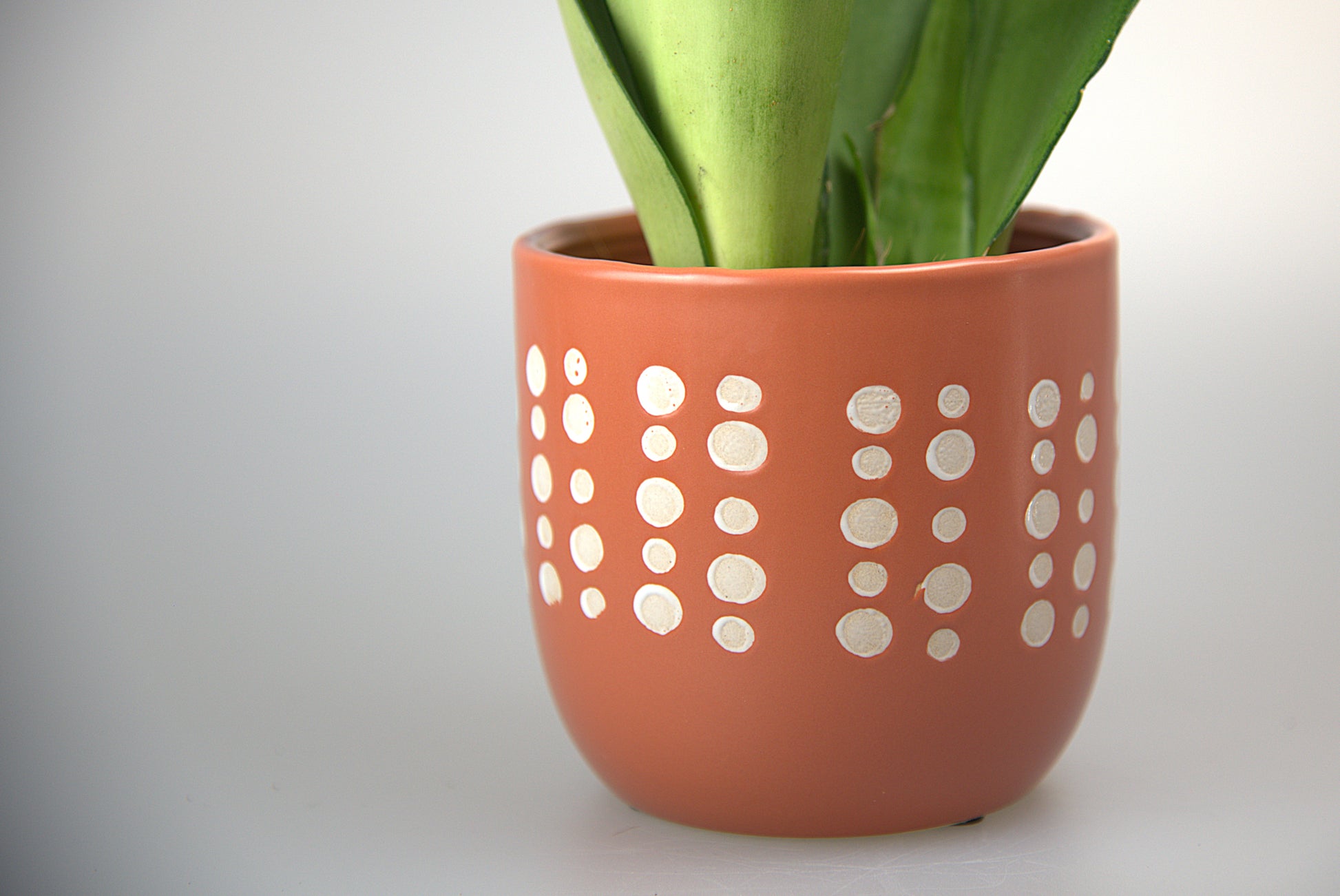 Krásný keramický obal na květináč, s japonským nádechem. Červenohnědá, designová glazura s bílými puntíky, leskem na přírodní keramice Vás nadchne.