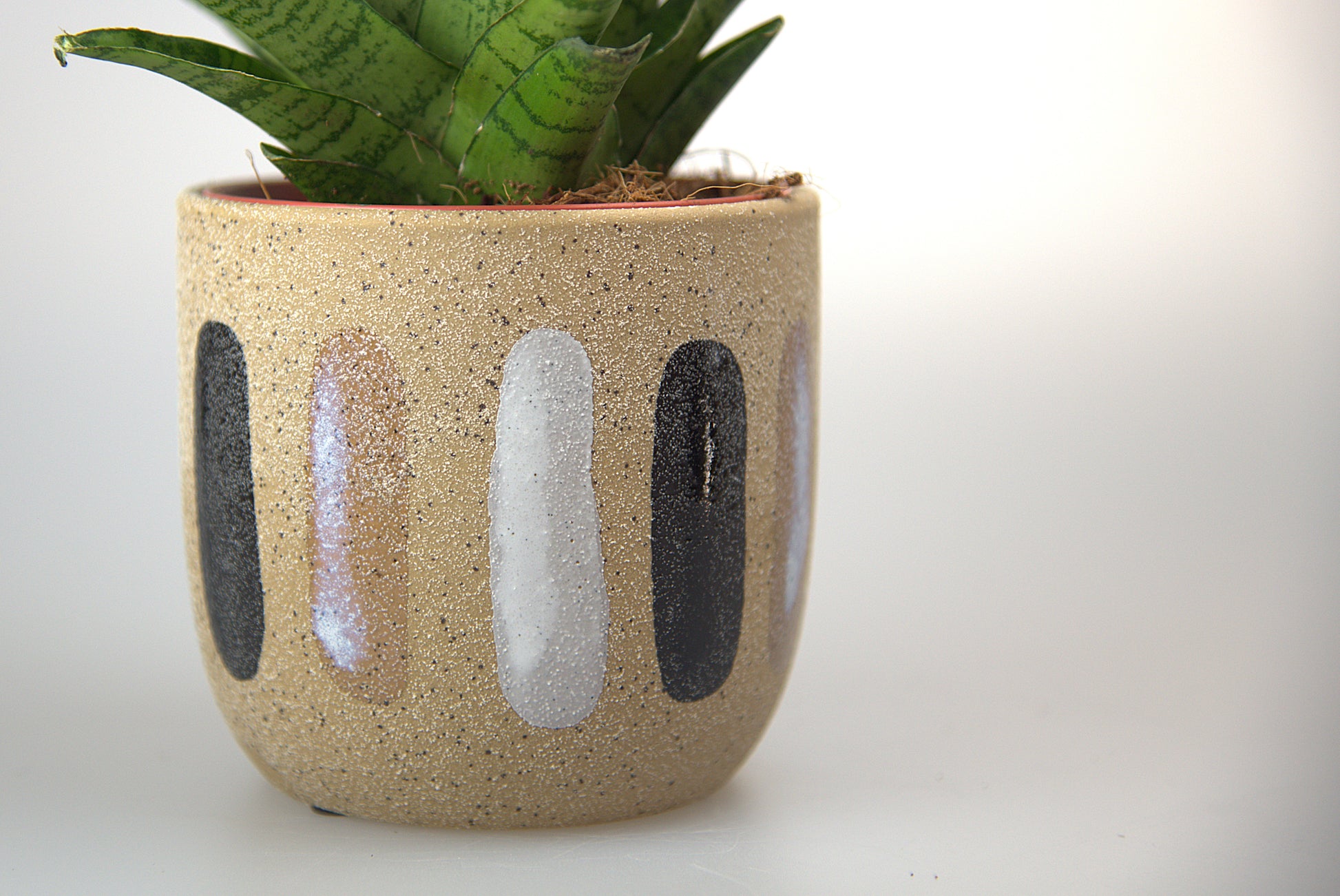 Krásný keramický obal na květináč, s japonským nádechem. Designová glazura s leskem na přírodní keramice s pískovým povrchem Vás nadchne.