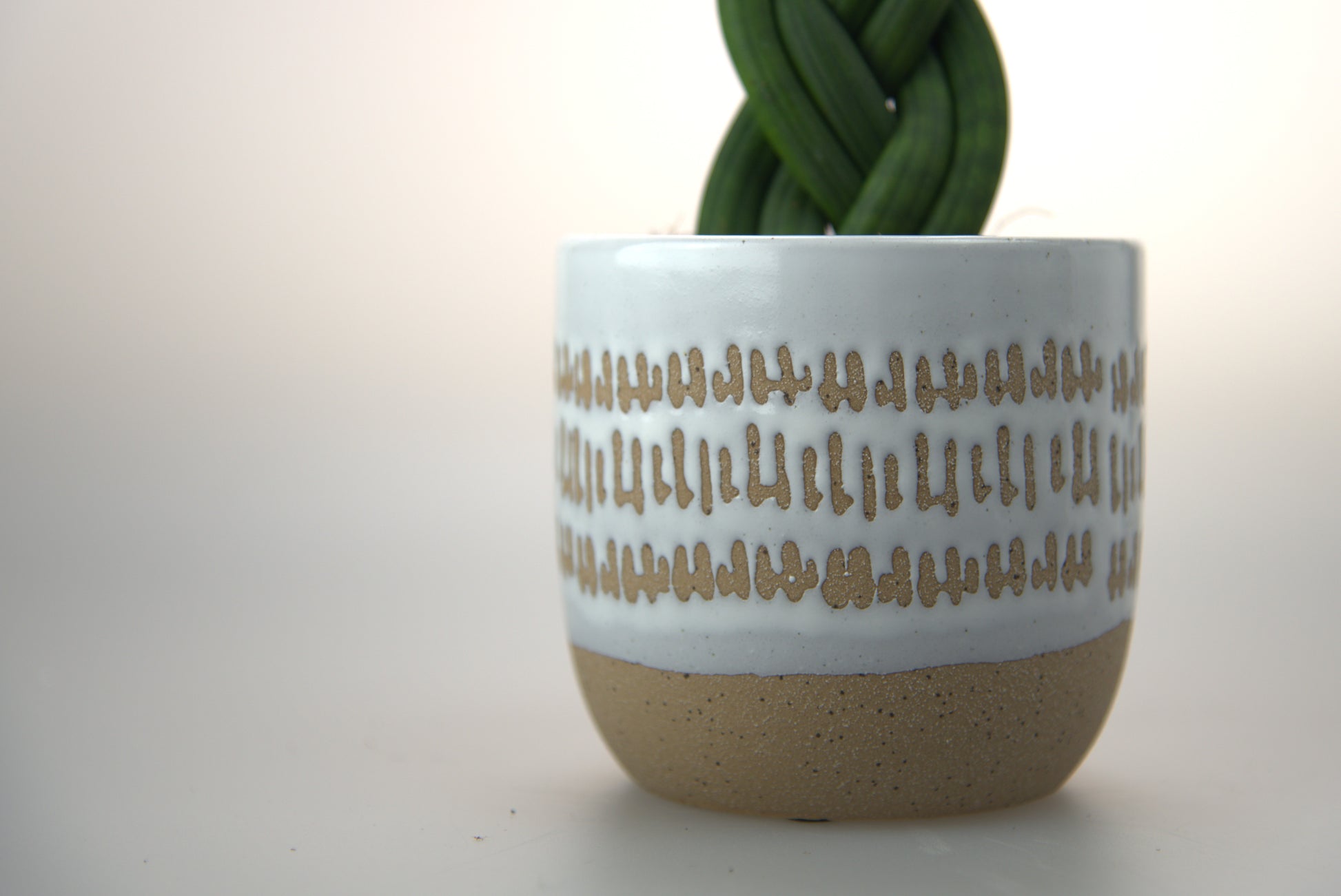 Krásný keramický obal na květináč, s japonským nádechem. Bílá, designová glazura s leskem na přírodní keramice s pískovým povrchem Vás nadchne.