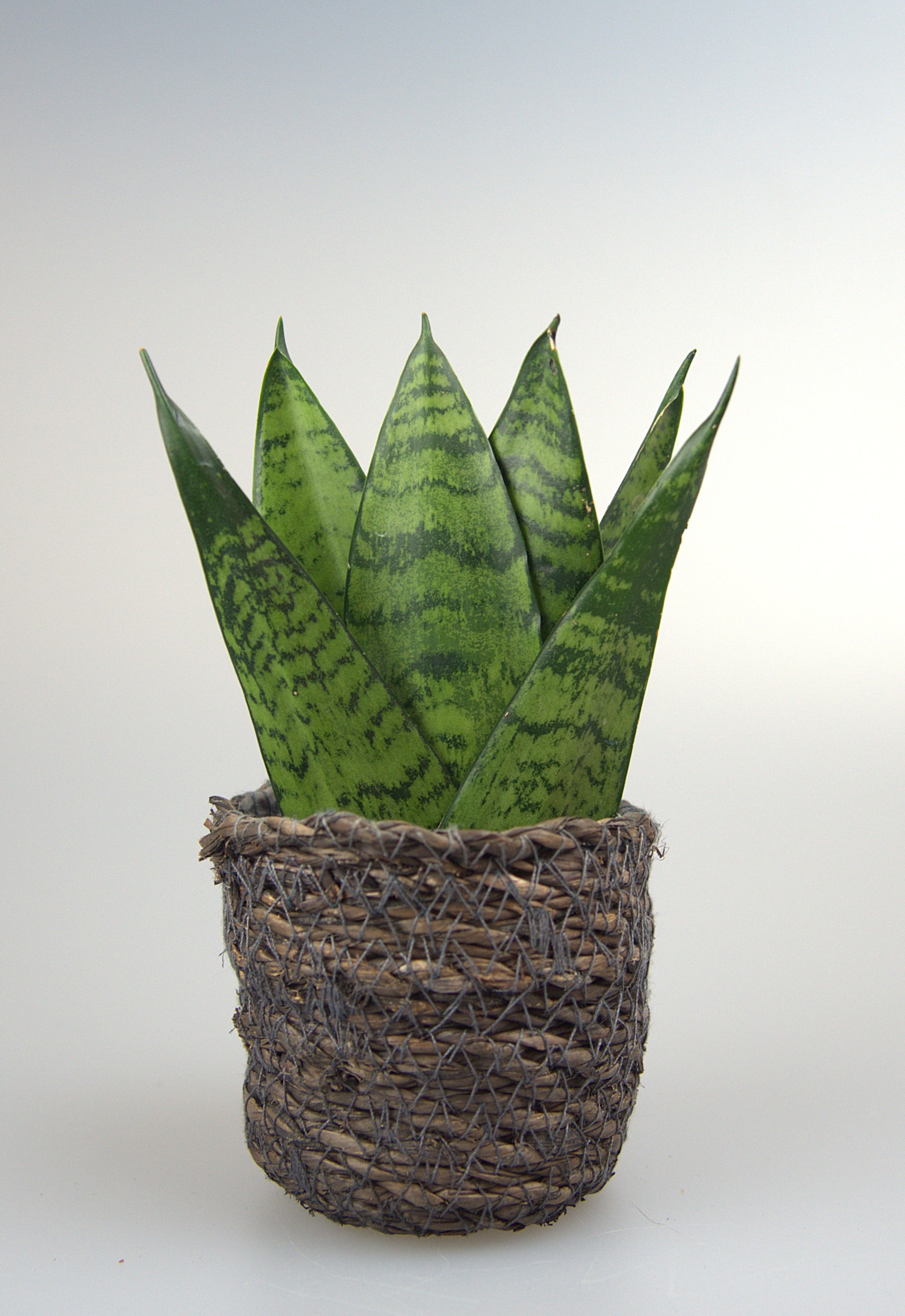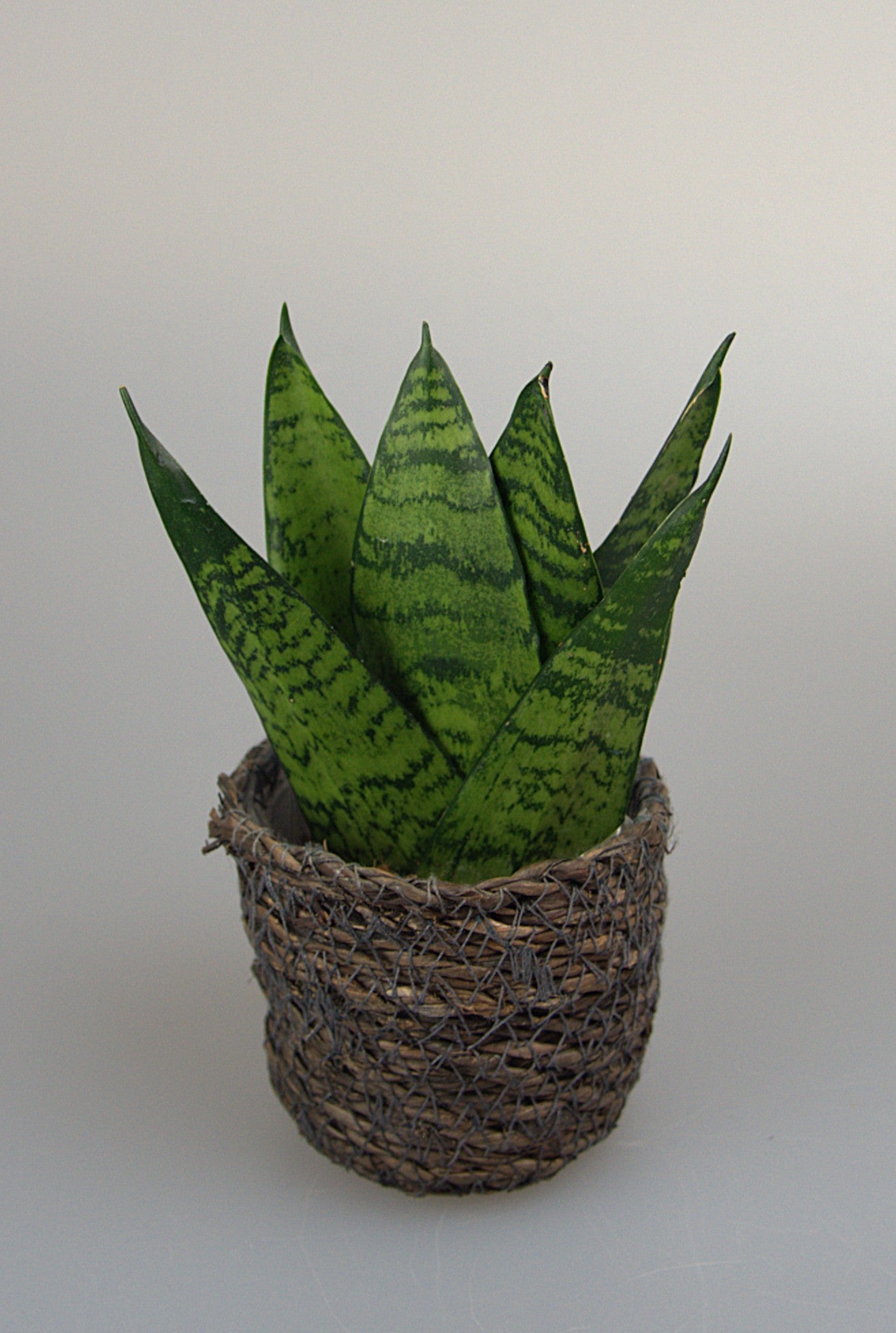 uspořádanými, mečovitými listy s šedo-zeleným mramorováním. Skvělá volba pro