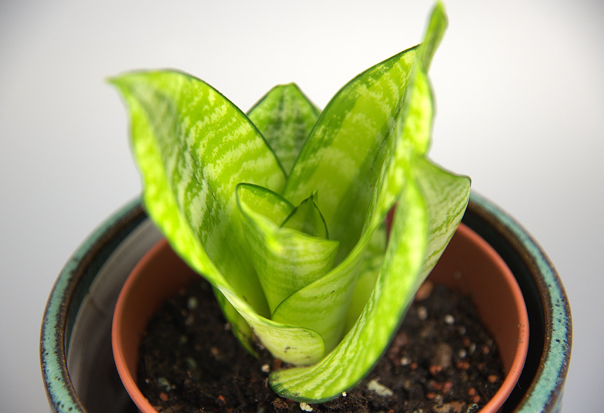 Tato odrůda sansevierie je známá svými zlatavě žlutými okraji na tmavě zelených listech, které tvoří kompaktní růžici. Je to okouzlující a robustní rostlina, která dodá interiéru zářivý a elegantní vzhled.