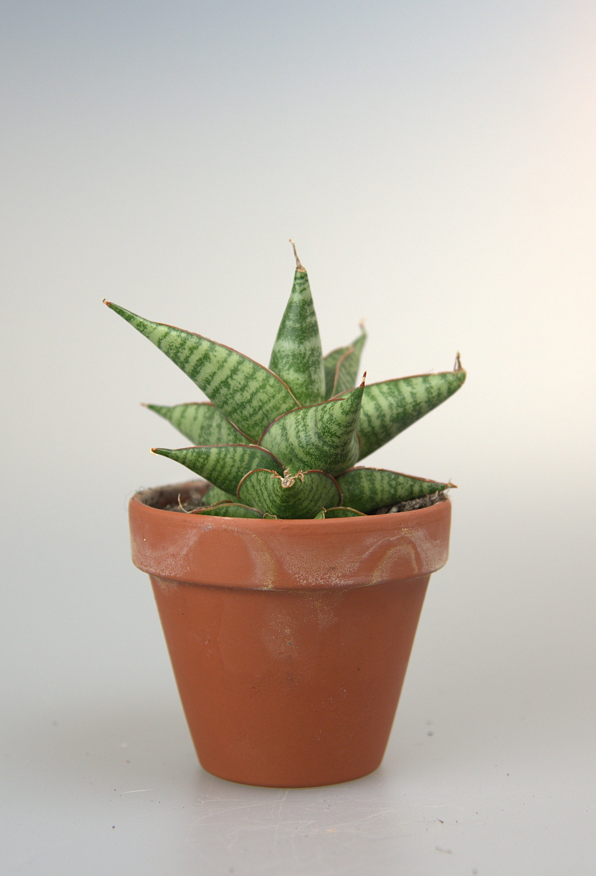 Zajímavý a méně běžný hybrid sansevierie s pevným, sošným růstem. Listy bývají tmavě zelené, masivní, často s jemnou kresbou nebo mramorováním a lehkým kroucením. Působí velmi exoticky a stylově – ideální jako solitérní rostlina do moderních interiérů.