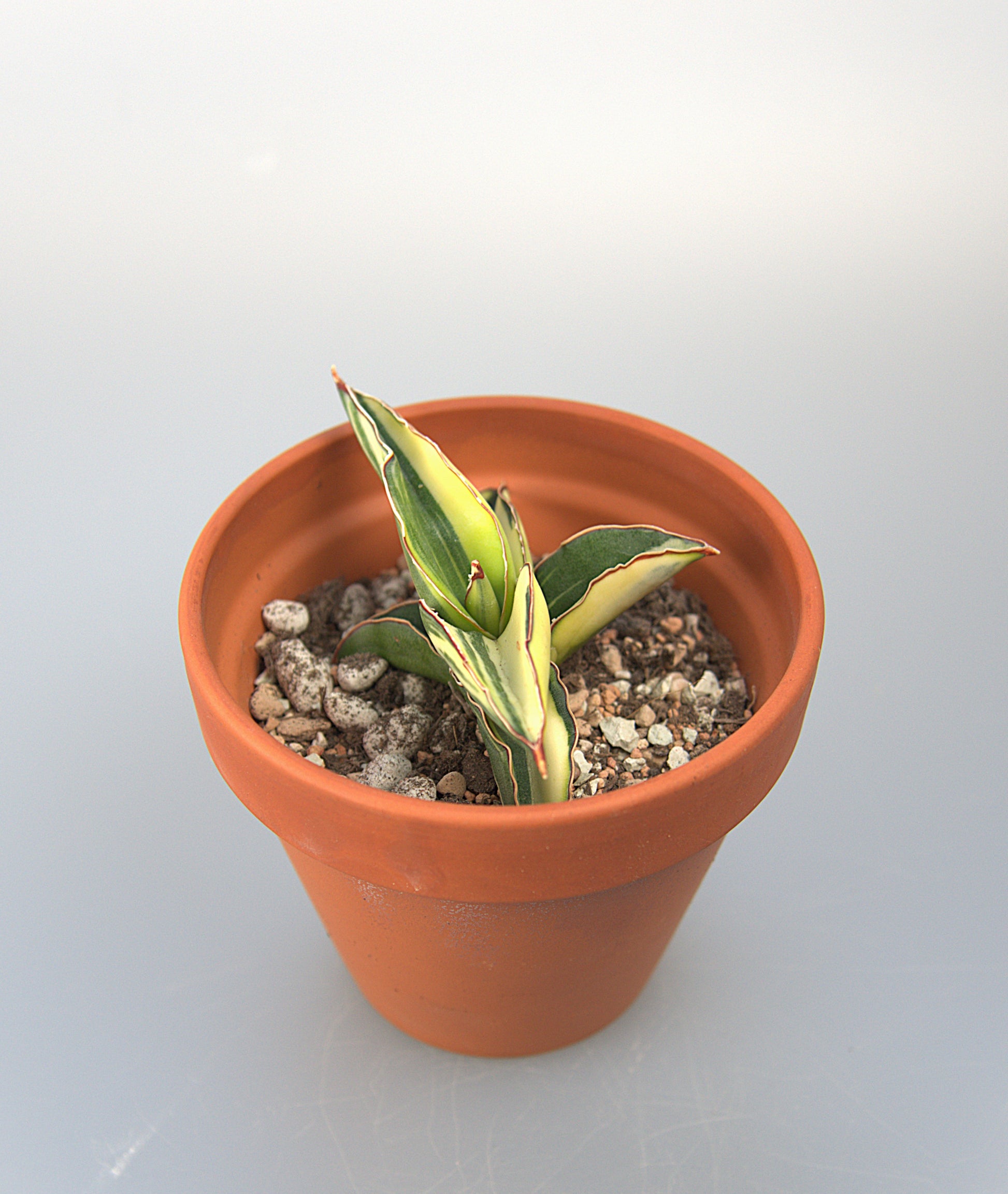 Sansevieria robusta 'White Variegated' je atraktivní kultivar známý svými širokými, mečovitými listy s výraznými bílými pruhy, které kontrastují s tmavě zeleným okrajem. Tento hybrid je ceněn pro svou nenáročnost a dekorativní vzhled, což z něj činí ideální volbu pro začátečníky i zkušené pěstitele.