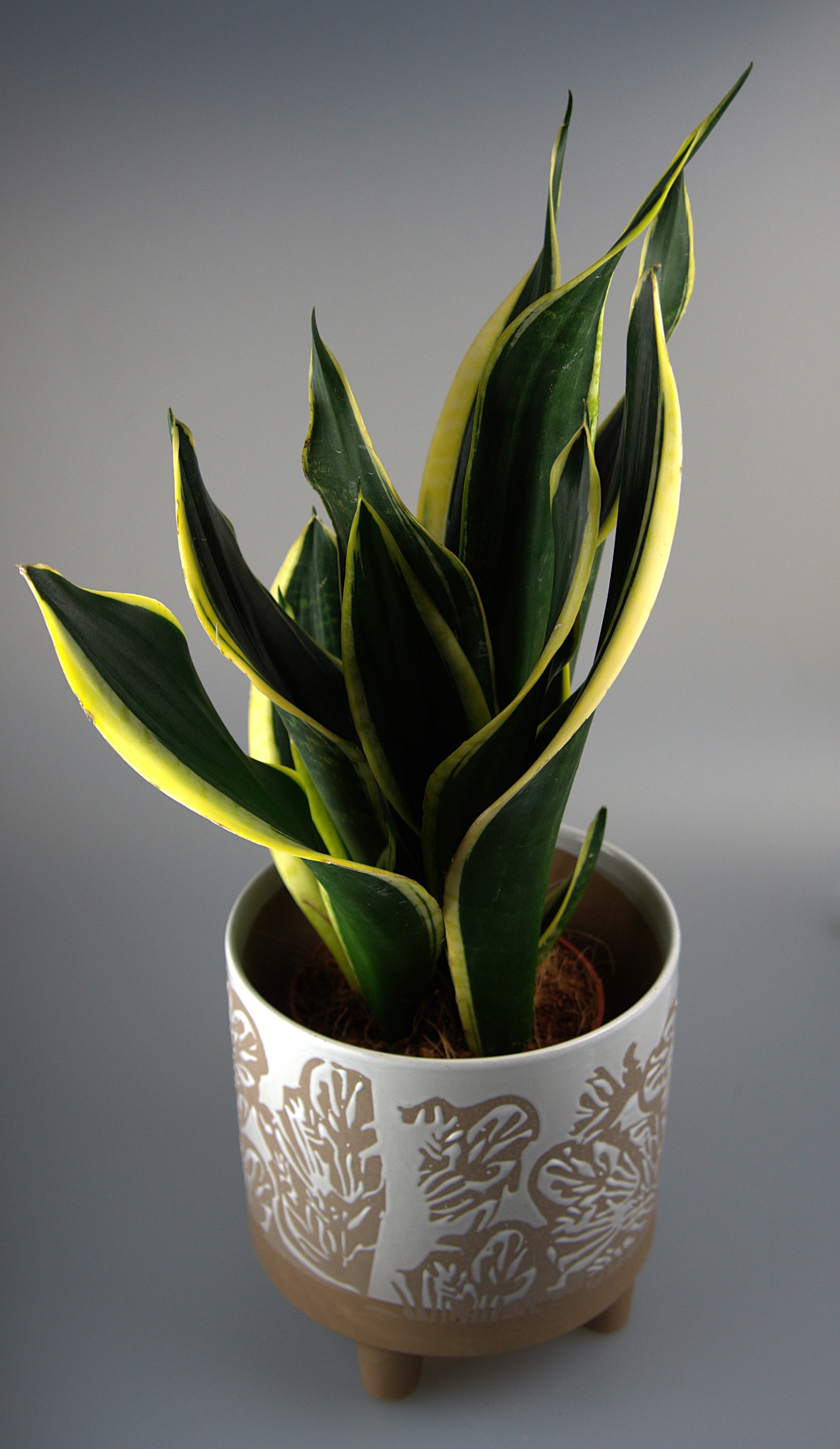 Sansevieria trifasciata Black Gold je nápadná a elegantní sansevierie s tmavě zelenými listy lemovanými zlatavě žlutým okrajem. Působí luxusně a přitom je velmi odolná.